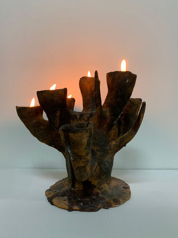 The candle in this artwork symbolizes the soul and hope of the tree. Even though the body of it doesn't look young anymore, the core of it still emit fire.
