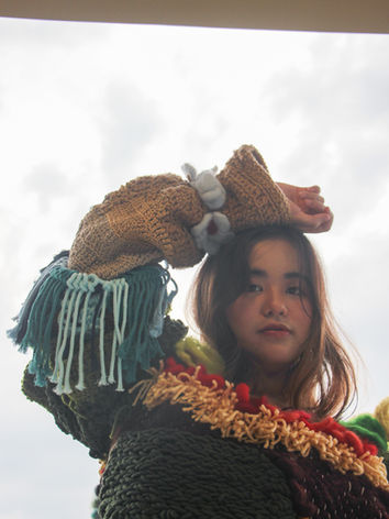 Haptic means relating to the sense of touch, in particular relating to the perception and manipulation of objects using the senses of touch and proprioception. This work has many embossed textures that can be felt to stimulate the sense of touch. In addition, this work is inspired by the sensitive feeling of the surrounding environment, which can be seen from the use of earth colors and inspired by natural forms such as leaves, flowers, mountains, etc. The use of earth colors reflects the nature surrounding us and the application of sustainability, which can be seen from the use of upcycling previously existing yarn materials or leftover yarns that are adjusted and strived to become a unified design.